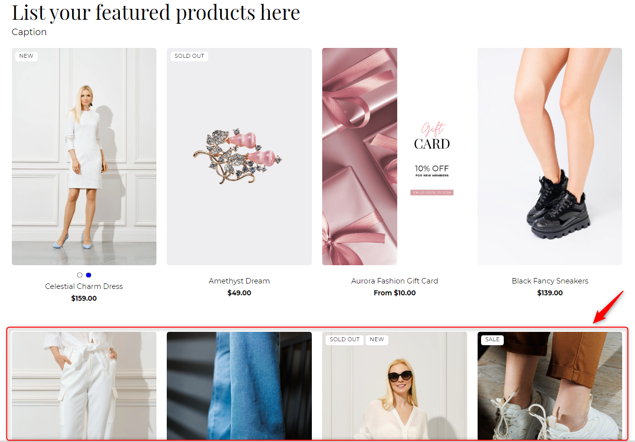 The featured products section of a Shopify store is a prime opportunity to showcase best-selling or newly released items, capturing visitors' attention and driving sales. Whether highlighting seasonal favorites, promoting exclusive collections, or spotlighting top-rated products, this section serves as a powerful tool for attracting customers and encouraging exploration. In this section, we'll explore the various settings and customization options available for the featured products section, empowering merchants to curate compelling product displays that effectively engage the audience and drive conversions.