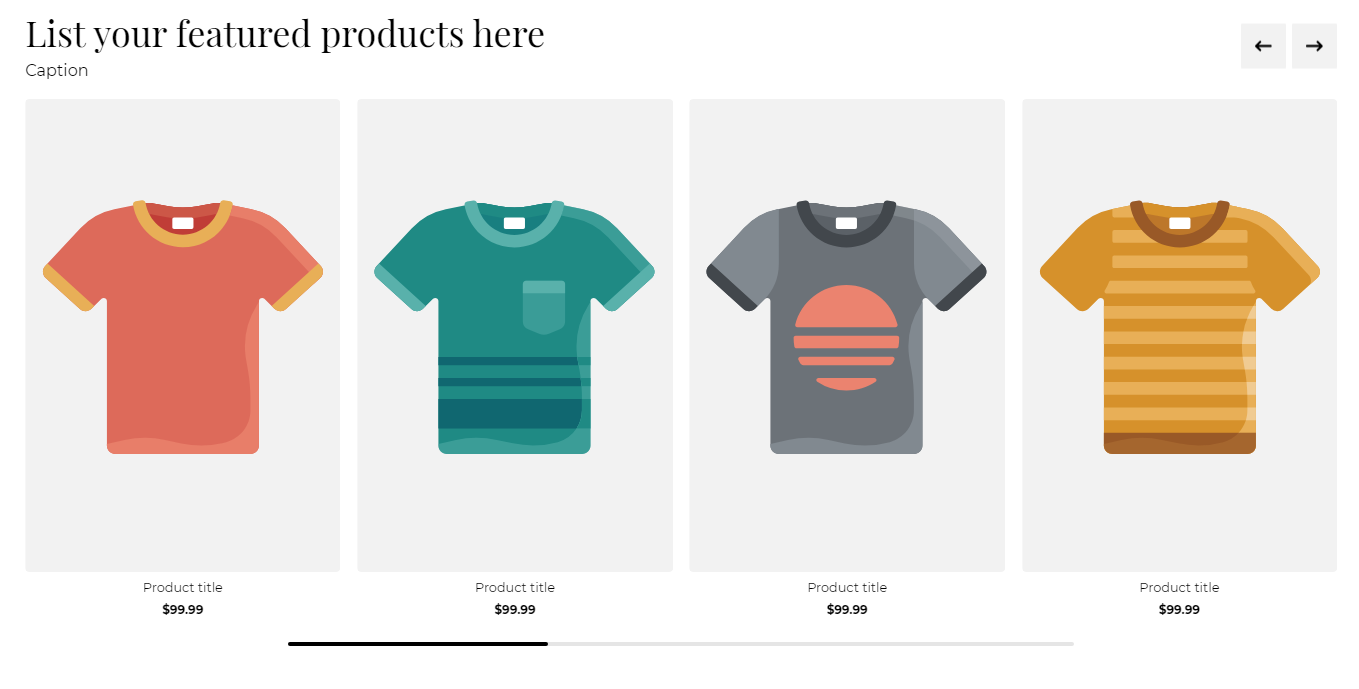 * **Enable scrollbar\*:** Enables or disables the scrollbar right under the products.<br>
